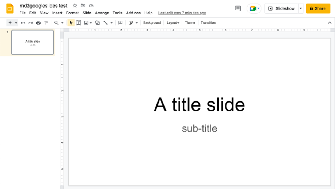 ${HOME}/tmp/md2googleslides_test.md --title "md2googleslides test"
